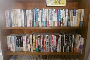 当店の100円均一本は店の外に販売台が2台と、店内にも本棚が1本あります。